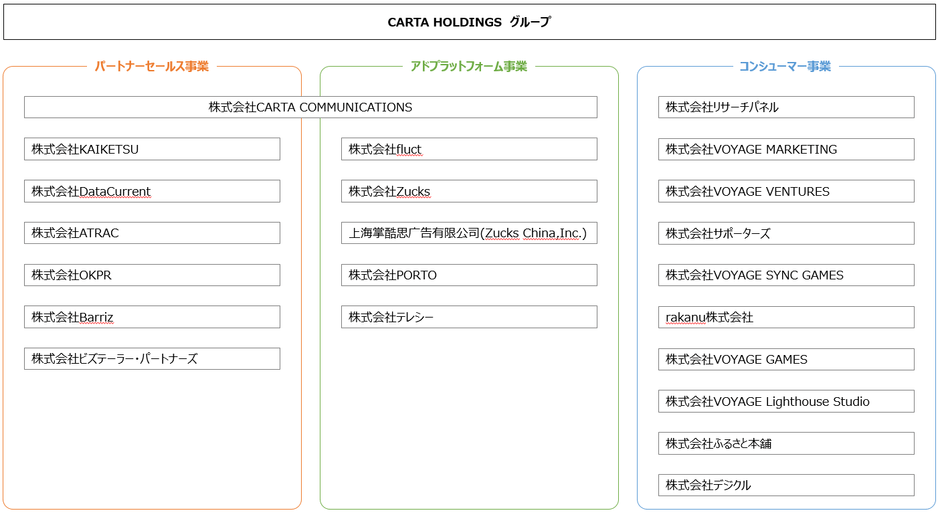 2022年1月1日のCARTA HDグループ再編後の連結グループ企業は、以下のとおりです。