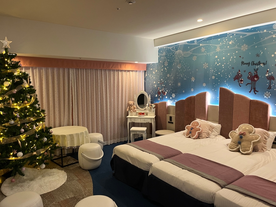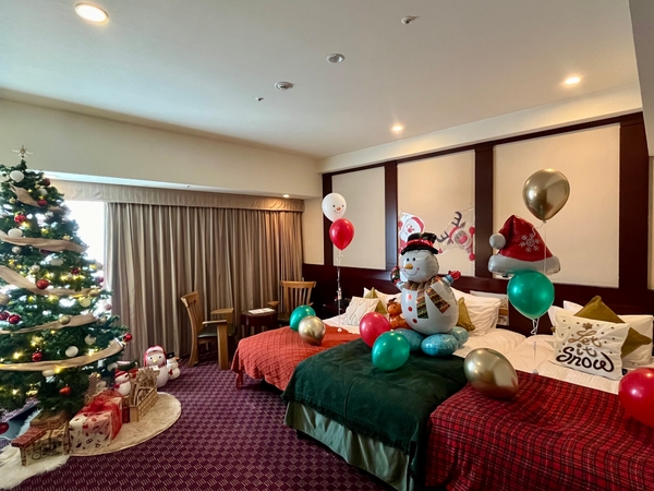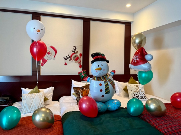 さらに、11月20日(水)からご宿泊いただける2つのクリスマスルームも登場。ピンクのオーナメントで飾られた2メートルを超えるクリスマスツリーや、真っ白なドレッサーを設置したガーリーな「ピンククリスマスルーム」には、写真撮影にぴったりなクリスマスカチューシャをご用意。写真映えするお部屋は女子会にもおすすめです。また、オリジナルクリスマスバルーン付きの「クリスマスルーム」も登場。サンタの帽子やスノーマンなど、クリスマスのモチーフを使用したバルーンは宿泊プラン特典としてお持ち帰りいただけます。
