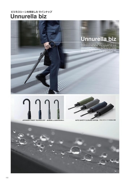 雨の日に通勤電車や商業施設に入った時、大事な商談や友人の家に招かれた時、濡れた傘から雨水が滴ります。誰でも経験したことがあるそんな日常にスポットを当て、傘を濡らさなければ周囲にも配慮が出来ると考え、最高水準のはっ水効果という機能を実現しました。