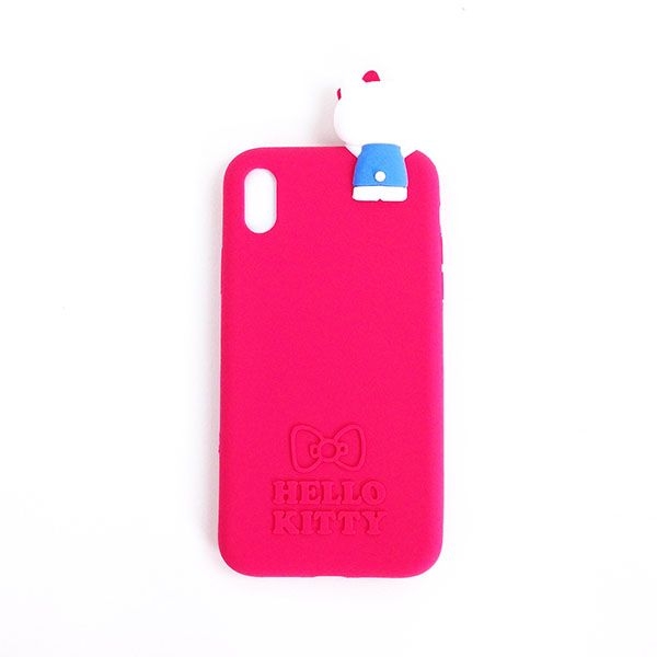 トップバッターは、キティちゃんのアイフォンXR専用ケース♡ショッキングピンクのキュートなカラーに、キティちゃんが上部にくっついていますね♪後ろ姿だけでもかわいさを感じてしまいます。ロゴの上には、お馴染みのリボンモチーフもデザインされていて、サンリオ女子にはたまりませんね~。バッグの中でも、すぐに見つけられそうです。