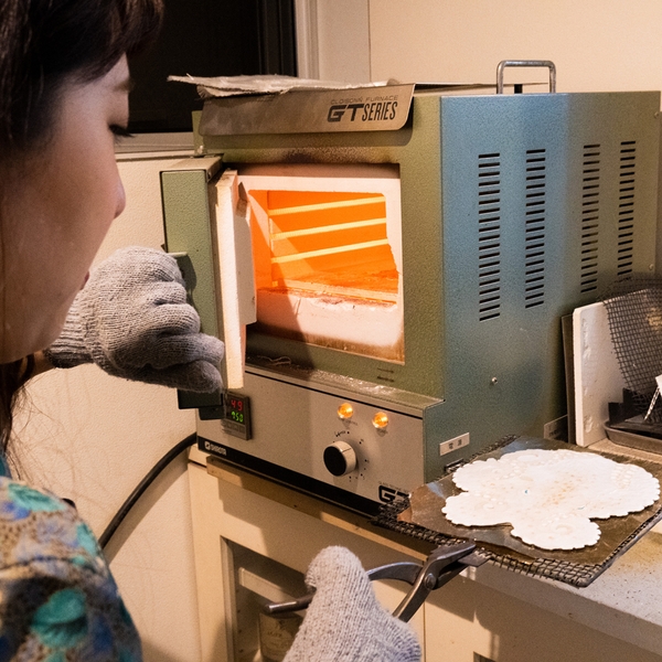 “小さい頃から様々な色でキラキラ光るガラスが大好きでした。そんな私にとって、七宝焼はガラスで自由に絵が描ける夢のような技法です。私が作品に選ぶモチーフは主に生き物や植物です。華美ではないですが、それぞれに宿る魅力に寄り添い制作することを大切にしています。”