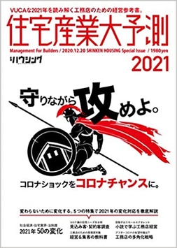 「住宅産業大予測」は工務店の応援紙「新建ハウジング」が工務店を中心とする地域の住宅産業の目線に特化して 2021年の住宅市場と住宅産業について解説する人気シリーズのムック本です。