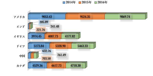 一人当たりの医療費、PPP(米ドル)– 2014-2016年