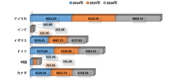 一人当たりの医療費、PPP(米ドル)– 2014-2016年