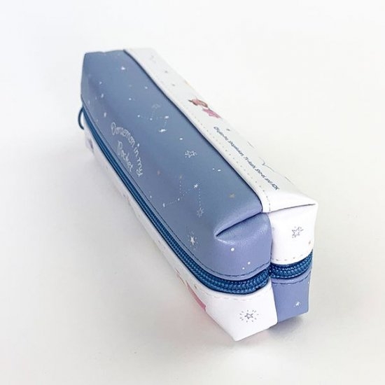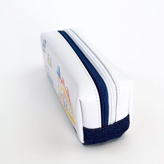 全体像はこんな感じです。底部分はデニムカラーでホワイトとネイビーのコントラストが効いてますね!全体がドラえもんのお部屋になったペンケースです。