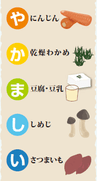 やかましいみそ汁とは、材料の頭文字が名前の由来で、「や:野菜」「か:海藻」「ま:豆・大豆製品」「し:しいたけなどのきのこ」「い:芋類」の栄養のバランスの良いみそ汁のことです。