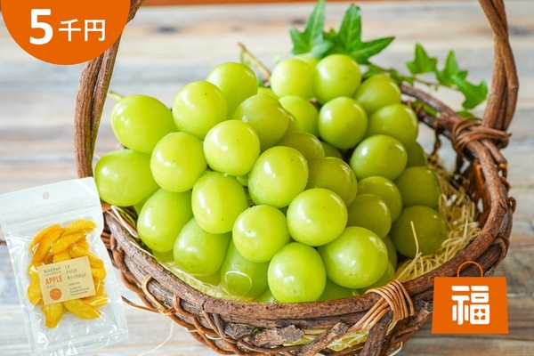 長野県小布施町の川上農園からお取り寄せできる、大人気ぶどう「シャインマスカット」の福袋も要チェック!感動のおいしさを味わえる、除草剤不使用の畑で育てた「シャインマスカット」2房と「ドライりんご」1袋がセットになっており、フルーツの甘みと香りに癒されること間違いなしの福袋です。
