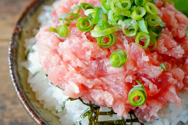 またネギトロは、"マグロの王様"本マグロと大バチマグロを使用し、大トロの脂と中落ち中トロと赤身を絶妙なバランスで混ぜて仕上げています。食べれば口の中に広がる、贅沢な旨みと脂の甘み!マグロ本来のおいしさをぜひお楽しみください。