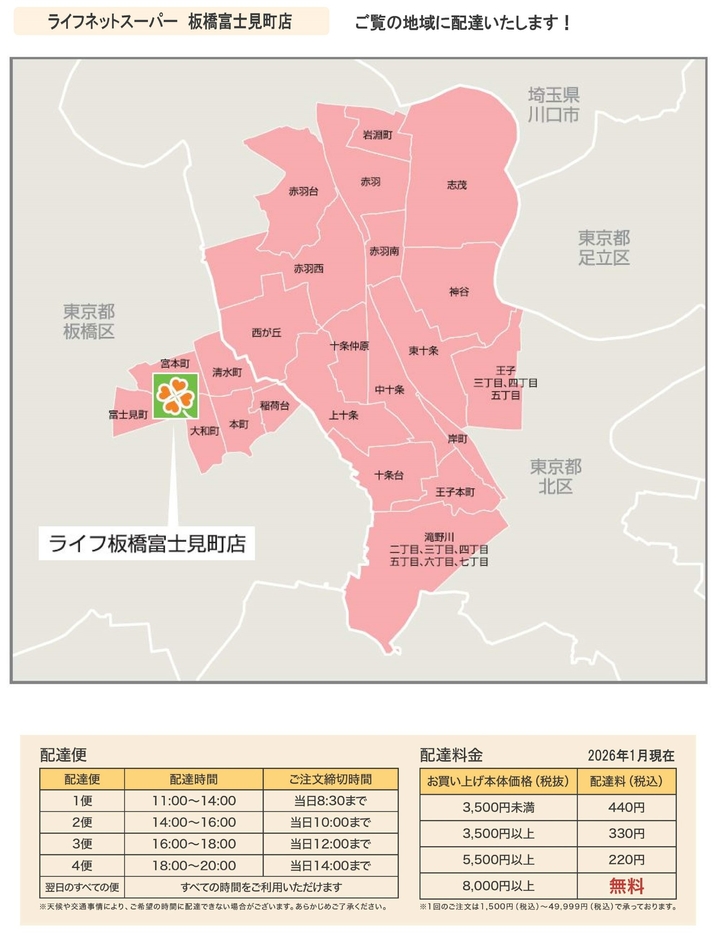 “おいしい” “ワクワク” “ハッピー” をお届けするライフコーポレーションは、3月11日(水)から「板橋富士見町店」でライフネットスーパーのサービスを開始しました。