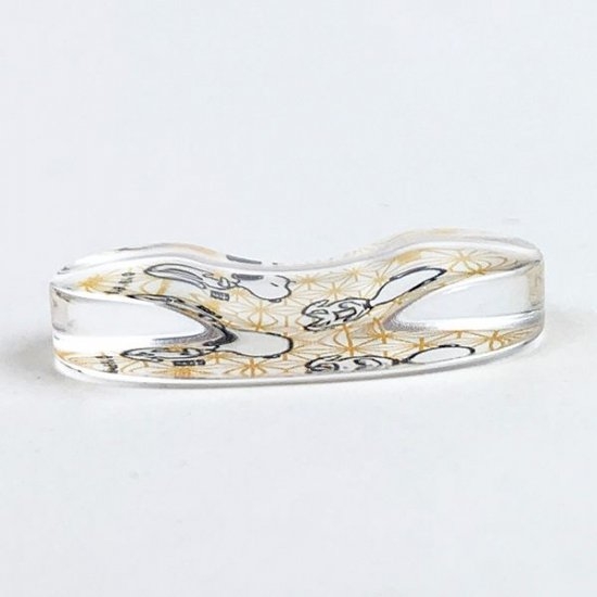 オーバルフォルムのアクリル樹脂製の箸置き。ガラス風の透明感が高くて、アクリルなので割れづらいといういいとこ取り。スヌーピーのデザインが描かれています。麻の花が背景にデザインされていて、和テイストな仕上がり♪