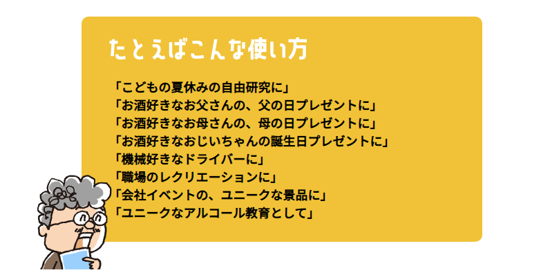 ユニークな飲酒教育、ユニークなプレゼントとして活⽤ください。
