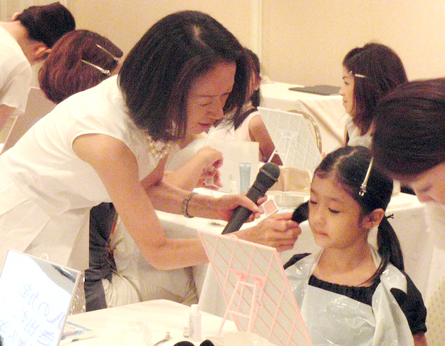 ミネラルカラーメイクアイテムを使用し、プリンセスメイクを体験する母娘教室。