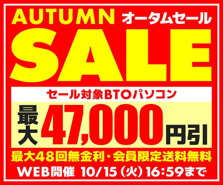パソコン工房WEBサイト、セール対象BTOパソコンが最大47,000円OFFの『オータムセール』開催中