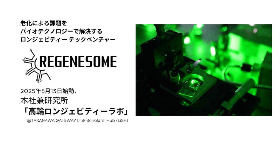 リジェネソーム株式会社(東京都港区、代表取締役CEO:鈴木健吾、代表取締役社長:佐久間善太郎、以下「リジェネソーム」)は、2025年5月13日より、港区・TAKANAWA GATWAY CITYに新設されたイノベーション拠点「LiSH」に本社兼研究所「リジェネソーム 高輪ロンジェビティーラボ」(以下、「高輪ロンジェビティーラボ」)を開設したことをお知らせいたします。高輪ロンジェビティーラボは、老化に関連する最先端のバイオテクノロジー研究・実証・事業化のハブとして機能します。