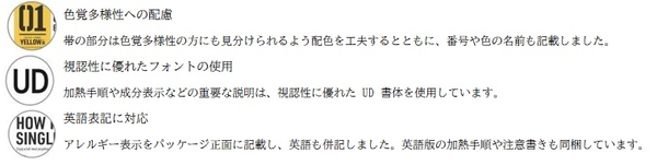 防災糧食が積み重なっていても、種類がひと目で分かるようにパッケージに色の違う帯を入れています。