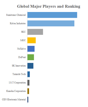 QYResearchのトップ企業研究センターによると、ディスプレイ用透明ポリイミドロールフィルムの世界的な主要製造業者には、Sumitomo Chemical、Kolon Industries、SKC、MGC、NeXolve、DuPont、SK Innovation、Taimide Tech、I.S.T Corporation、Kaneka Corporationなどが含まれている。2022年、世界のトップ5企業は売上の観点から約36.0%の市場シェアを持っていた。