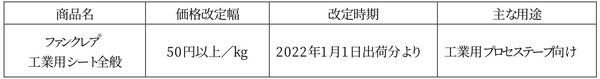 工業用軟質多層シート「ファンクレア(R)」の価格改定について