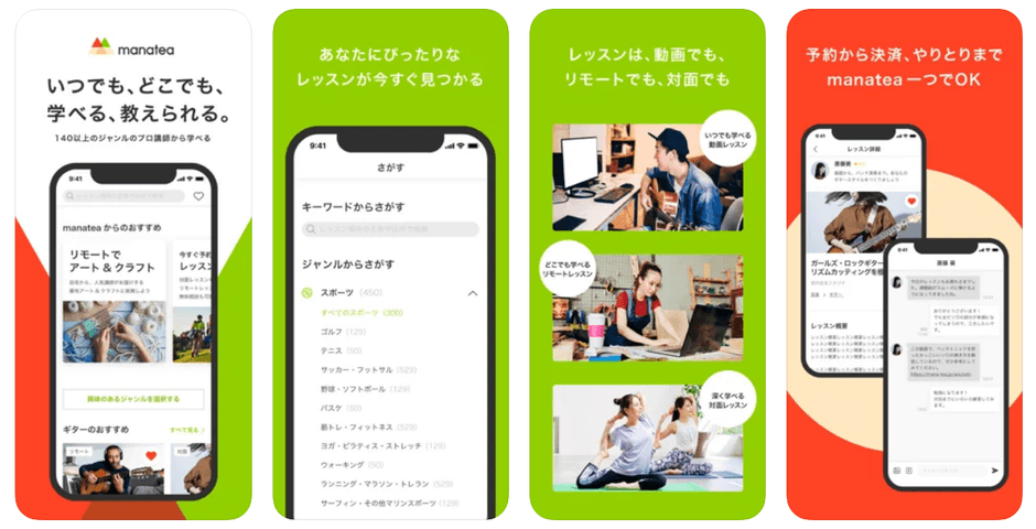 2022年4月に140以上のジャンル取り扱いを開始し、現在はスポーツ・クラフト・音楽・伝統文化・ビジネスなど幅広いレッスンを受けられるプラットフォームとなります。