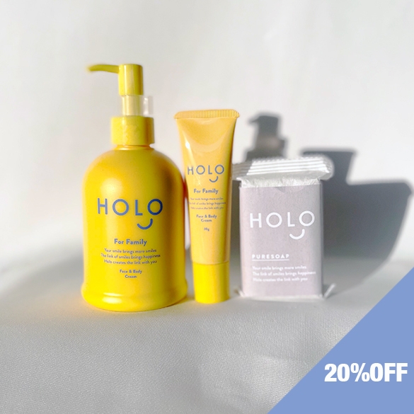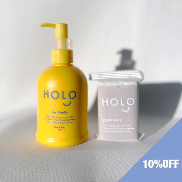 HOLOはアトピー性皮膚炎に悩む開発者が家族のために開発したお顔、身体全身に使えるスキンケア商品です。