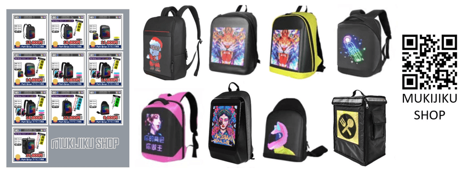 弊社ではこのLEDパネル搭載バックパックを 「MUKIJIKU-4DX」 のブランド名で展開。MUKIJIKUシリーズのフラッグシップモデルとして位置付けています。