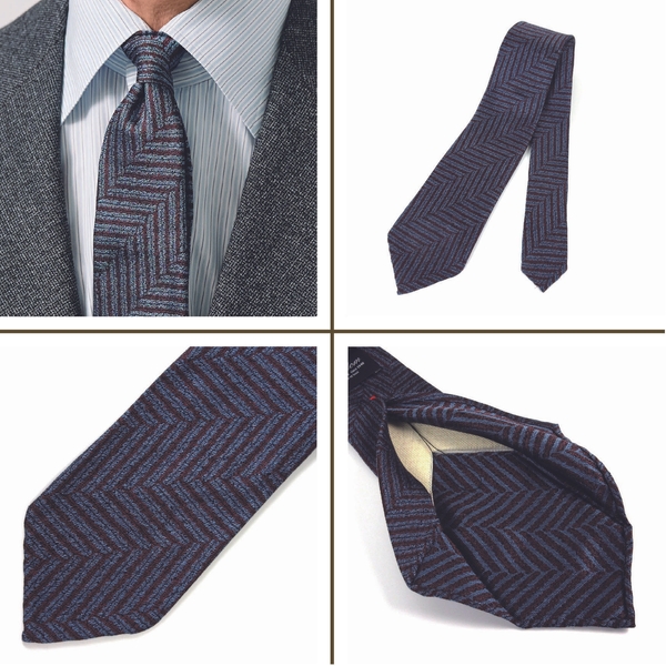 今回は、四方氏自身が本気で締めたいと考えたネクタイを制作。アールダムで軽量ネクタイ「エアリータイ」を一見クラシックながら、今らしい軽快感があり、確実に胸元を洒脱に見せます。