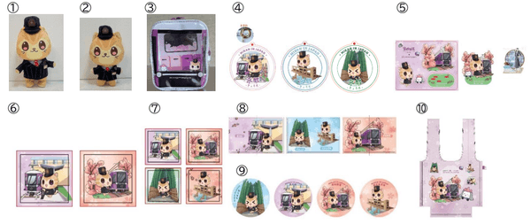 (4)2025年6月9日(月)から2026年2月28日(土)までの期間中は、嵐山駅インフォメーションでコラボグッズ3品目(②みかん駅長ミニぬいぐるみキーホルダー、⑦マグネット4個セット、⑩折りたたみショッピングバック)のみ販売します。