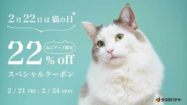 2月22日は「猫の日」ラスタバナナダイレクト会員限定!22%OFFスペシャルクーポン配布中!