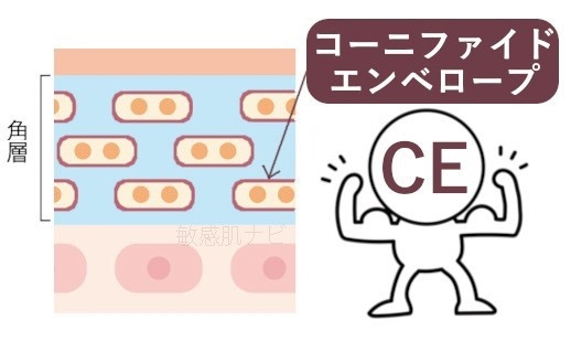 コーニファイドエンベロープ(CE)は、角質細胞の周りを覆う膜状のたんぱく質構造です。