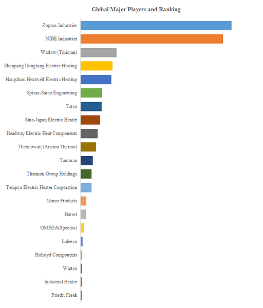 yhResearchのトップ企業研究センターによると、電気発熱体の世界的な主要製造業者には、Zoppas Industries、NIBE Industrier、Watlow (Tinicum)、Zhenjiang Dongfang Electric Heating、Hangzhou Heatwell Electric Heating、Spirax-Sarco Engineering、Sino-Japan Electric Heater、Tutco、Headway Electric Heat Components、Thermowatt (Ariston Thermo)などが含まれている。2023年、世界のトップ10企業は売上の観点から約32.0%の市場シェアを持っていた。