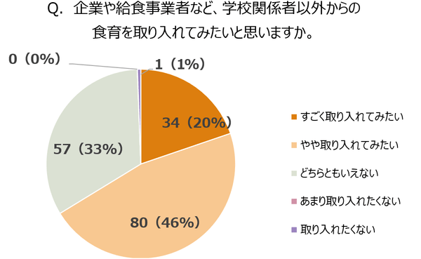 ・学校関係者以外からの食育を取り入れてみたいという回答は全体の66%でした