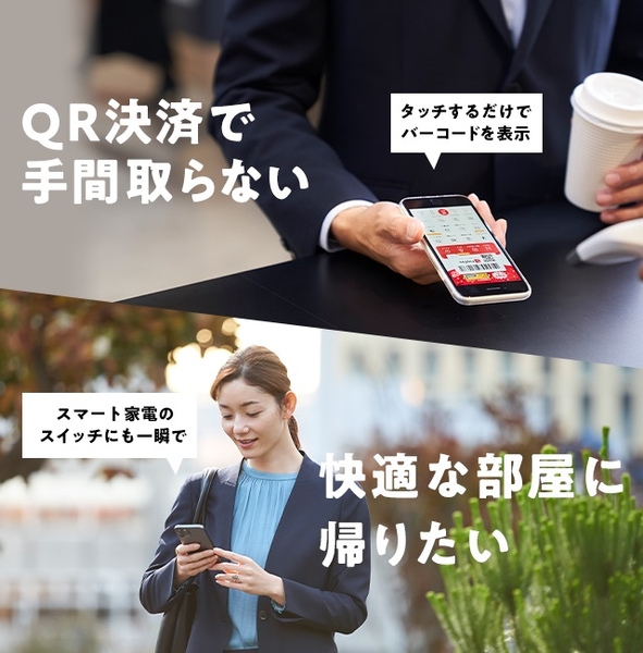 今回発売する『JITAN SUIT』は、ボタンに小型のNFC(近距離無線通信)タグを内蔵しており、このNFCタグに予め利用したいアプリを登録しておくことで、ボタンにスマートフォンをかざすと登録したアプリが瞬時に起動する仕組みとなっています。スーツはメンズ・レディスで企画し、NFCタグはメンズスーツにはジャケットの前ボタンと左右の袖ボタンに計3つ、レディススーツにはジャケットの前ボタンと裏地の織りネームに計2つをそれぞれ内蔵しています。それぞれのボタンにスマホ決済・音楽再生・各種SNSなど普段よく利用するアプリを登録。また、登録したアプリは好みに合わせていつでも書き換えることもできます。