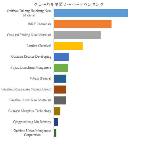 LP Informationのトップ企業研究センターによると、超高純度硫酸マンガンの世界的な主要製造業者には、Guizhou Dalong Huicheng New Material、ISKY Chemicals、Guangxi Yuding New Materials、Lantian Chemical、Guizhou Redstar Developing、Fujian Liancheng Manganese、Vibran (Prince)、Guizhou Manganese Mineral Group、Guizhou Jinrui New Materials、Guangxi Menghua Technologyなどが含まれている。2024年、世界のトップ5企業は売上の観点から約64.0%の市場シェアを持っていた。