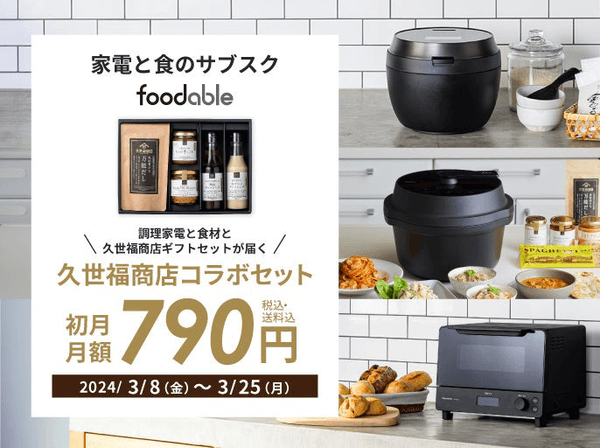株式会社サンクゼールは、パナソニック株式会社が運営する家電と食のサブスクリプションサービス「foodable(フ―ダブル)」にて、久世福商店・サンクゼールの調味料が届く新コースの提供を開始いたします。2024年3⽉8⽇(金)よりお申込みいただけます。