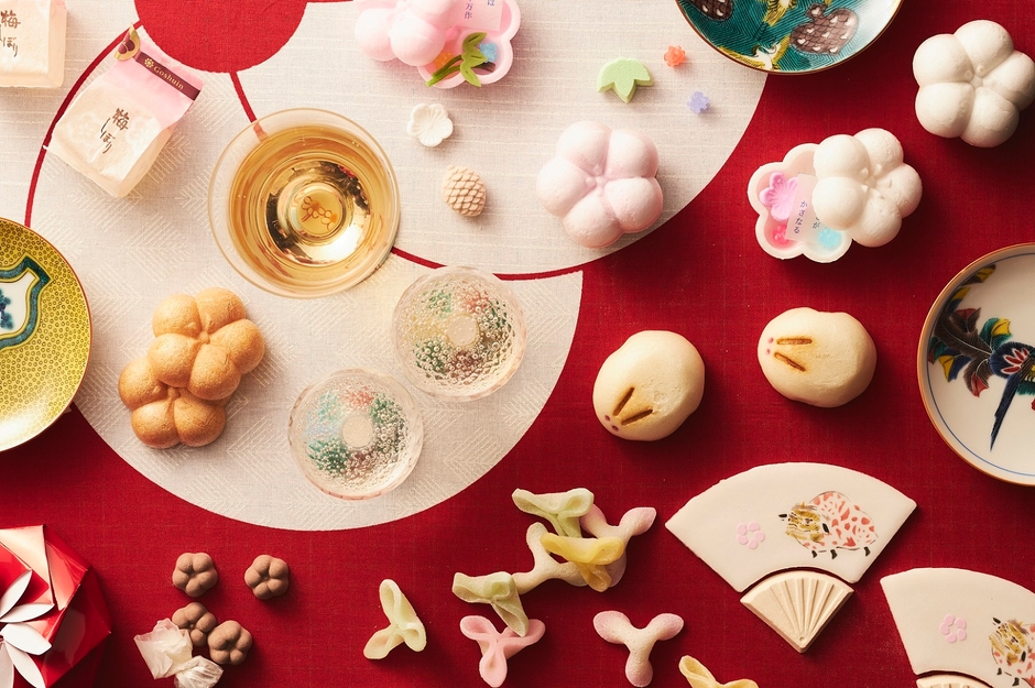 界 加賀では、2020年12月1日〜2021年1月31日、「縁起菓子ステイ」を実施します。加賀藩藩主の前田家の家紋である剣梅鉢を型取った縁起菓子「福梅」を、新春に食べる習慣が古くからある石川県。福梅に加えて、おみくじが入った遊び菓子「辻占」など梅や開運にちなんだ縁起菓子を、梅酒スパークリングや梅昆布茶とともに客室にて提供します。館内の水引の設えや、厄払いのご当地楽「加賀獅子舞」とあわせて、長年親しまれてきた加賀文化を楽しめるプランです。