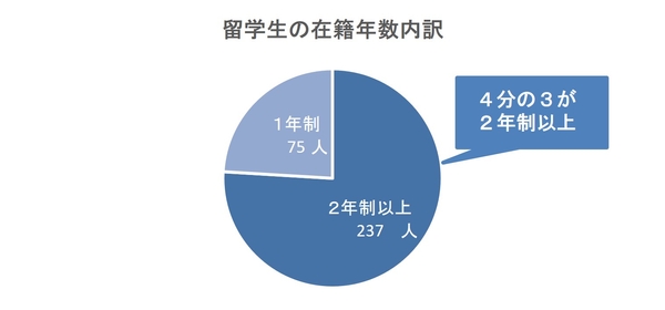 1年制でも調理師免許は取得できますが、より専門的な調理技術を習得するために、2年制以上の課程に在籍する留学生が4分の3を占めています。