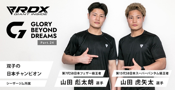 シュートボクシング日本チャンピオンとして格闘技界の未来を背負うRDXアンバサダー山田彪太朗・山田虎矢太 選手のインタビュー記事を独占掲載。双子でありながらそれぞれ違ったファイトスタイルで、数々の成績やストーリーを残してきた山田兄弟の私生活から格闘技に対しての価値観等、知られざる軌跡を語っていただきました。詳しい内容はインタビューメディア「GLORY BEYOND DREAMS」に掲載されています。