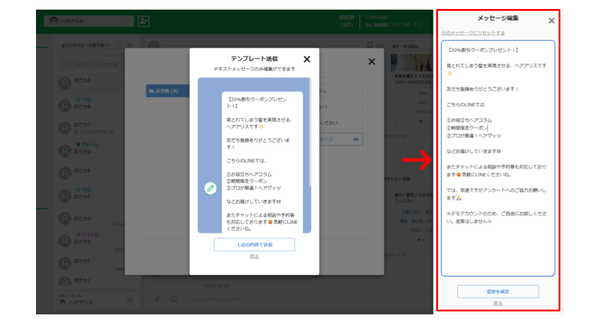 定型文として登録したテンプレートを、送信直前に編集できるようになりました。