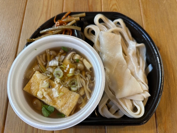 埼玉県の熊谷といえば日本有数の暑い街として知られているが、実はうどんの名店が多いことでも有名。そんな熊谷エリアの名店が出品するうどんは、埼玉では珍しい自家農園で栽培した青パパイヤを使ったうどんと三陸石巻船越産のわかめを贅沢にトッピングした2種類。麺とつゆと具材が絶妙なハーモニーを奏でる。