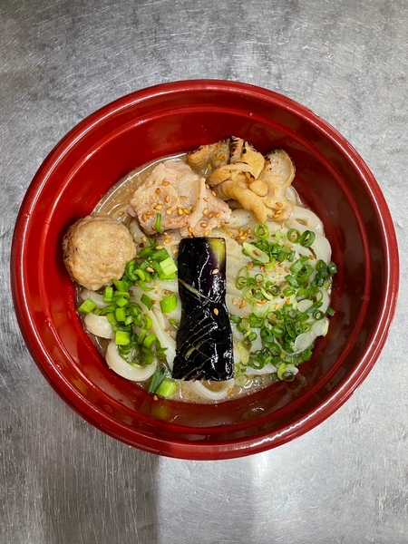 2024年の4月にオープンした比較的新しいお店で店内は明るく清潔感があり単独客でも入りやすい。店内では若い姉妹が切り盛りをしており、うどんの種類がとても豊富。生麺の販売もしており、自宅でも楽しむことができる。看板の角煮肉汁うどんは、大きな角煮に豚しゃぶと茄子と玉ねぎが入った贅沢な一品だ。