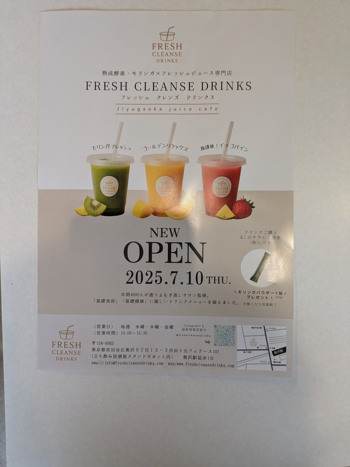 自由が丘・奥沢【酵素とモリンガの“美と健康”ドリンク専門店】「FRESH CLEANSE DRINKS」がオープン!
