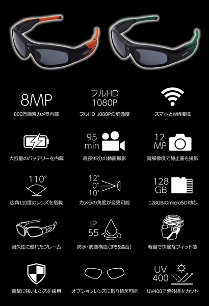 これまでのアクションカメラのあらゆる難点をクリアしサングラスにHDカメラを搭載した、「見たままが録画できるサングラス」です。