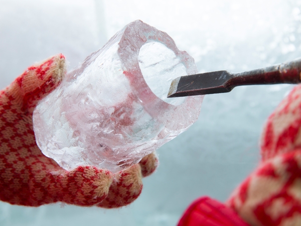 氷のアトリエでは、寒い環境を活かした物作り体験ができます。氷を削ってオリジナルのグラスを作成する「氷のグラスづくり」はアイスヴィレッジならではのクラフト体験です。