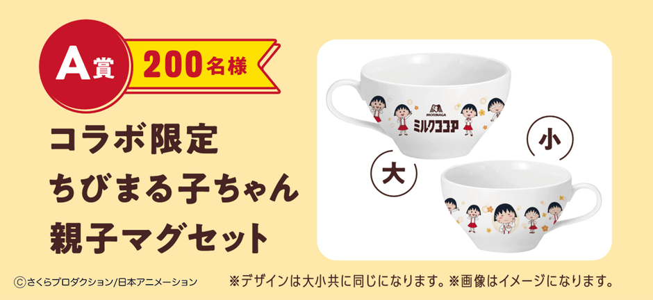 対象商品1個以上お買い上げ頂いた購入レシートを撮影のうえ、特設サイトの応募フォームからご応募いただけます。ご応募いただいた方の中から抽選で合計400名様に、A賞コラボ限定ちびまる子ちゃん親子マグセット(200名様)、B賞ホーローミルクパン(200名様)をプレゼントいたします。