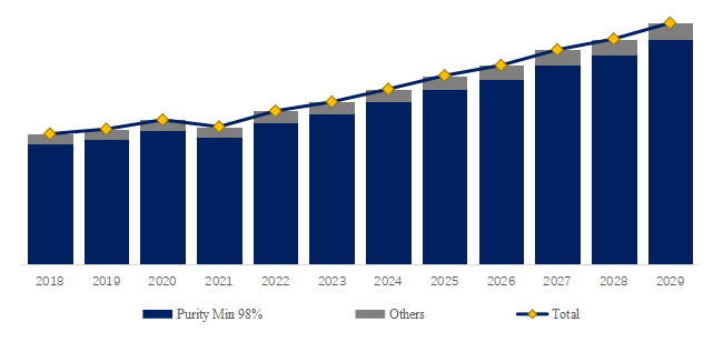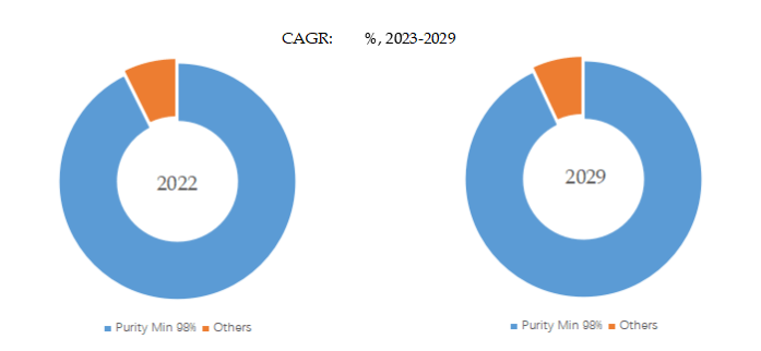 製品タイプ別では、純度98%以上が最大のセグメントで、92%のシェアを占めている