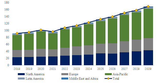 図. N-(tert-ブトキシカルボニル)-4-ピペリドンの世界市場規模(百万米ドル)、2018-2029年