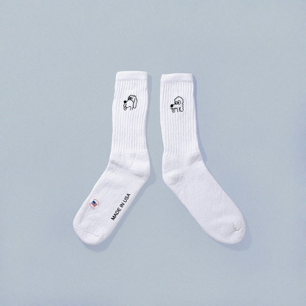 今回のコラボレーションでは「犬好きのためのワンマイルウエア」をテーマに、自身も犬好きで、これまでの作品にも多くの犬モチーフを残している加賀美 健氏に刺繍デザインを依頼。ゆる~く、思わずクスリと笑ってしまう、SHIPS anyのために描き起こした2種類のワンちゃんのイラストを刺繍にして、それぞれのアイテムに落とし込みました。