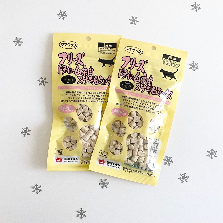 今回のプロジェクトにご賛同くださいましたママクック株式会社様(https://www.mamacook.co.jp/)より、ご購入者様の愛猫ちゃんへ、フリーズドライの猫用おやつから「フリーズドライのムネ肉スナギモミックス」をプレゼントしていただけることになりました。