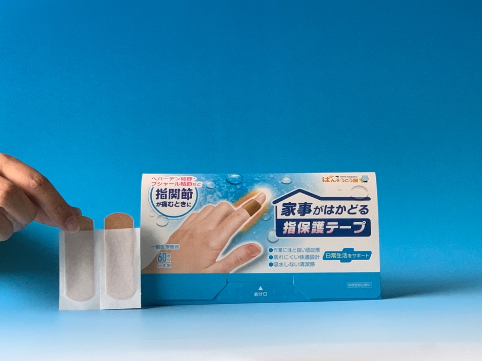 「家事がはかどる指保護テープ」は、実際にヘバーデン結節に悩む一人の女性の声をきっかけに開発がスタートしました。