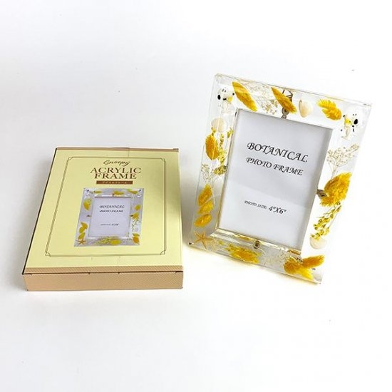 まるでハーバリウムのような歯ブラシスタンド&写真立てが、とってもオシャレ♪カラーもナチュラルなイエローとグリーンが揃いました。
