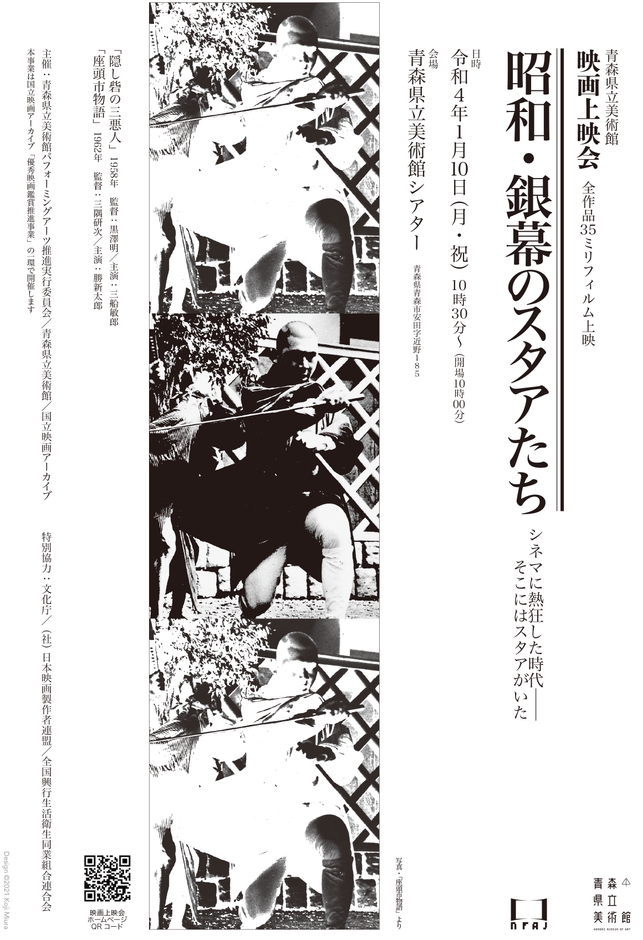 青森県立美術館映画上映会「昭和・銀幕のスタアたち」が2022年1月10日(月・祝)に青森県立美術館シアター(青森県青森市)にて開催されます。チケットはカンフェティ(運営:ロングランプランニング株式会社、東京都新宿区、代表取締役:榑松 ⼤剛)にて発売中です。
